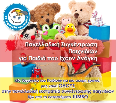 Τα καταστήματα Jumbo στα Χανιά, την Πάτρα, το Αγρίνιο, τη Χαλκίδα και στην Καλαμάτα παραχώρησαν τους χώρους τους στον οργανισμό «Το Χαμόγελο του Παιδιού» προκειμένου να συγκεντρωθούν παιχνίδια για τα παιδιά και τις οικογένειες που στηρίζει.