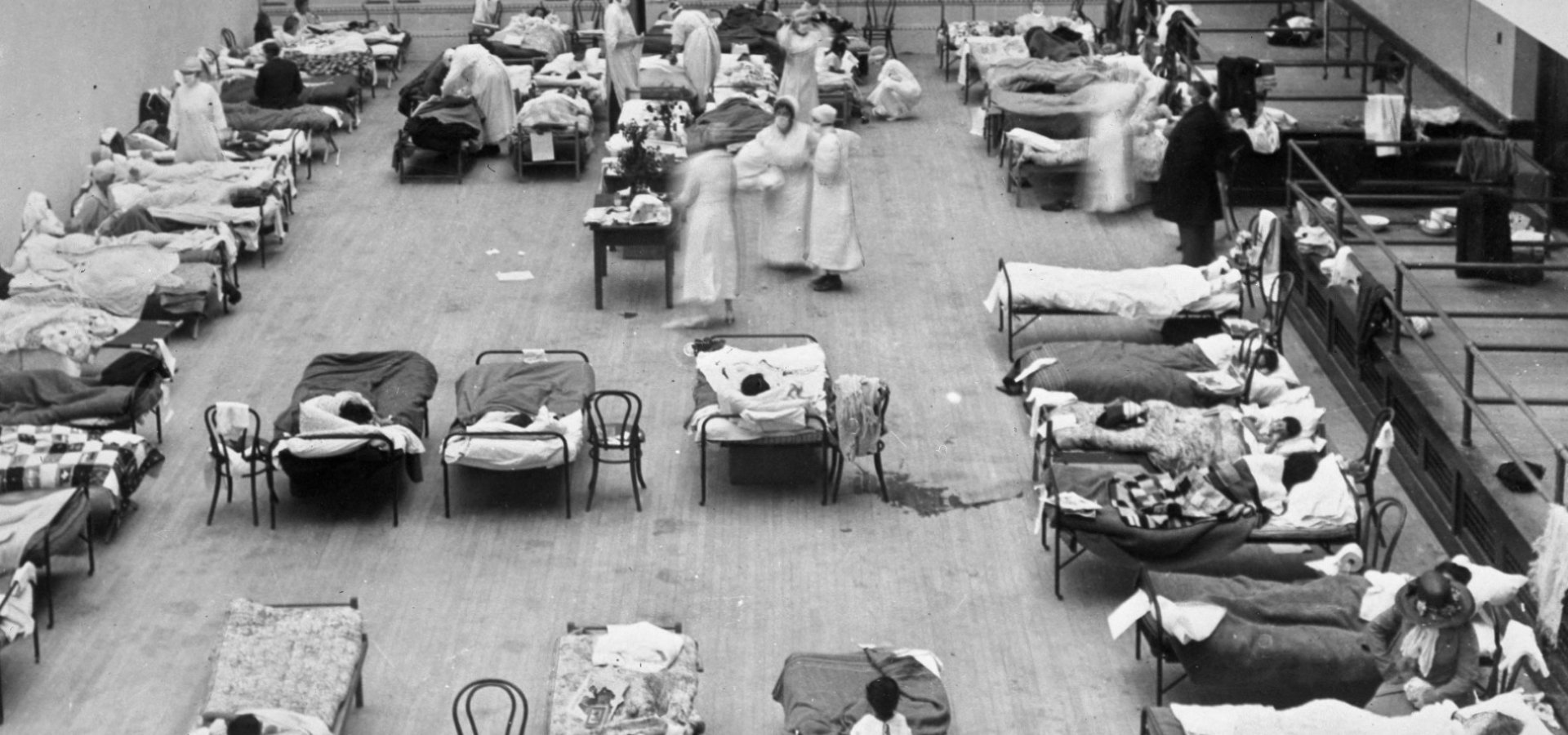| 1918, εθελόντριες νοσοκόμες του Ερυθρού Σταυρού φροντίζουν ασθενείς με θανατηφόρα γρίπη στο Οκλαντ (AP image) |