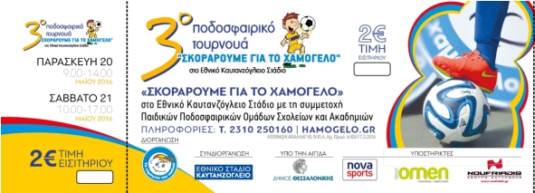 Με το συμβολικό εισιτήριο των 2€ μπορείτε να παρακολουθήσετε όλους τους αγώνες του διημέρου αλλά και να συμβάλλετε ουσιαστικά στο έργο του Οργανισμού «Το Χαμόγελο του Παιδιού».
